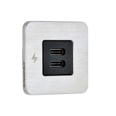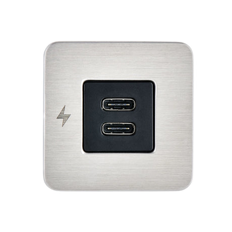 Dual USB-C Interior Charging Socket - Stainless Steel