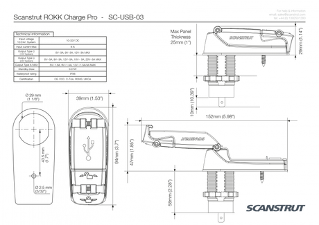 ROKK Charge Pro Dual USB-A & USB-C Fast Charging Socket