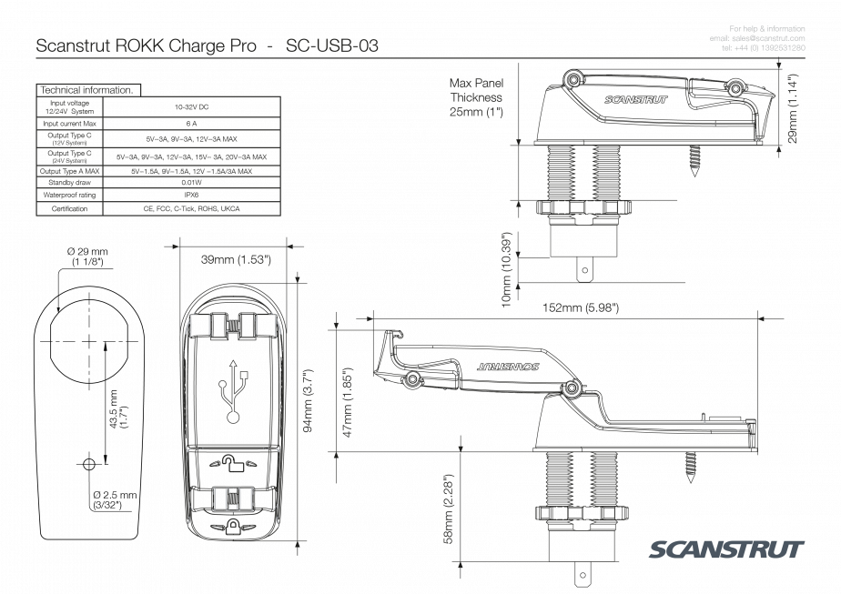 • Easy Install, using standard USB mounting hole - 29mm (1 1/8”)