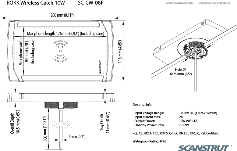 Catch is a part of our IPX6 waterproof 12/24V Qi certified waterproof wireless charging range that enables wireless charging for the outdoor environment without phone charging cables.