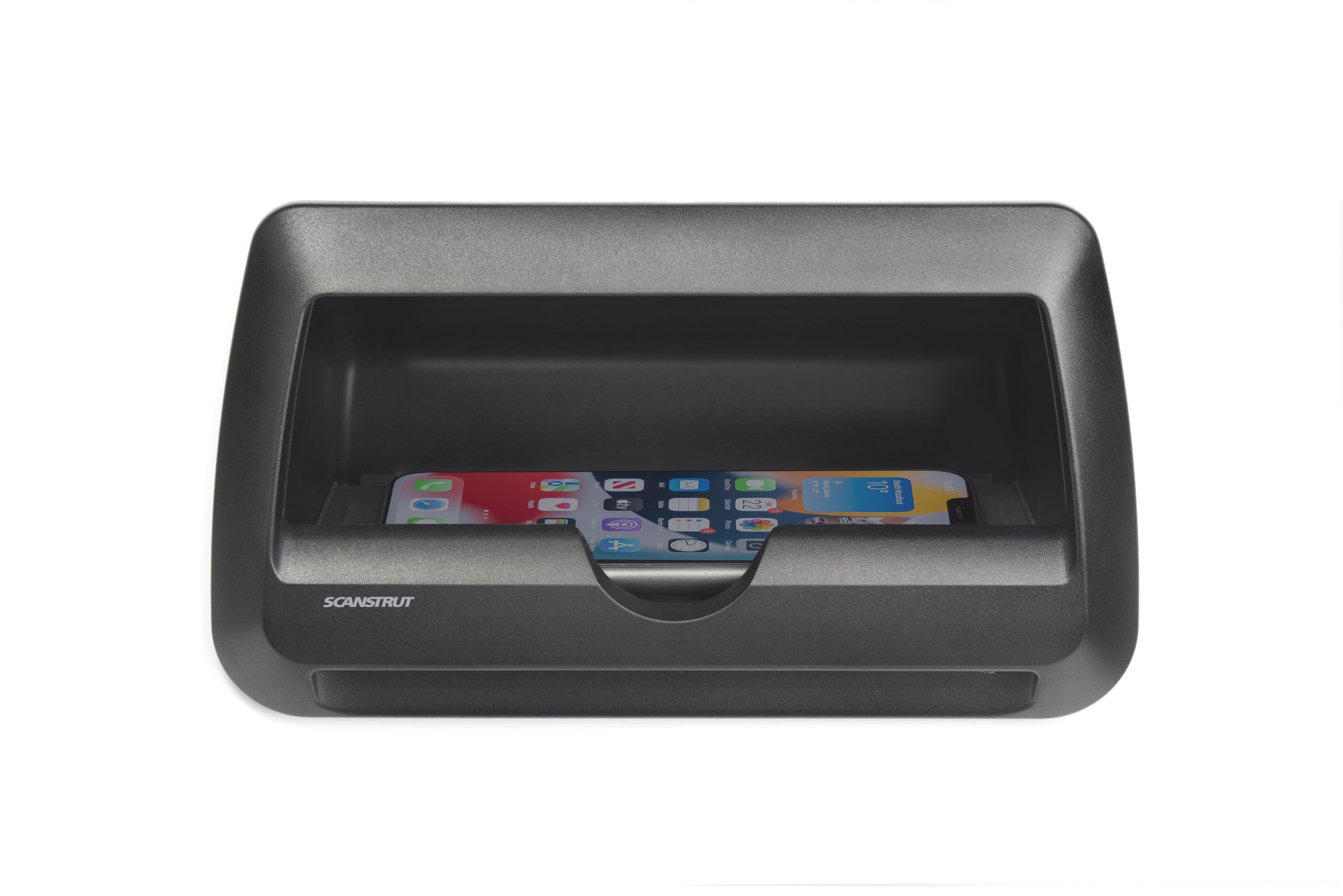 Rounded corners and tapered front design eliminate all snagging risks, making it possible to install in high-traffic areas of the boat where phone charging/storage until now has been impossible.